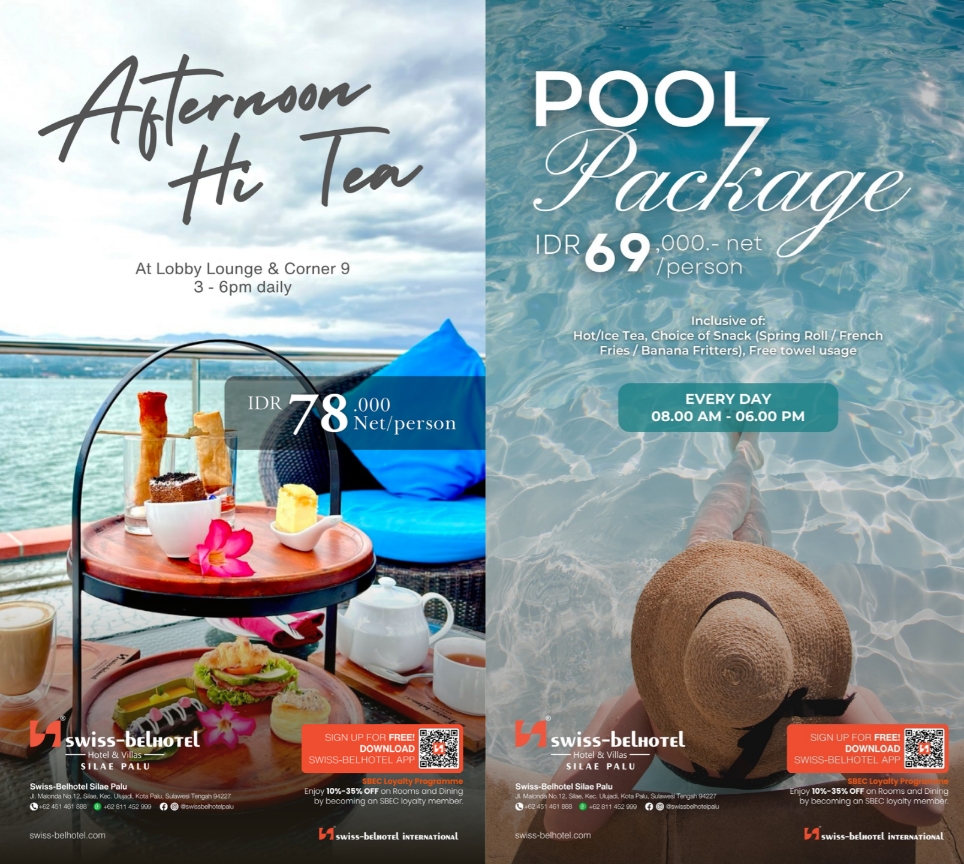 PALU, – Swiss-Belhotel Silae Palu, destinasi akomodasi unggulan yang menghadap langsung ke keindahan Teluk Palu, kembali menghadirkan inovasi terbaru melalui peluncuran dua paket rekreasi dan kuliner: Pool Package dan Afternoon Hi Tea. Kedua promo ini dirancang khusus bagi masyarakat Kota Palu yang menginginkan relaksasi berkualitas tanpa harus bepergian jauh.